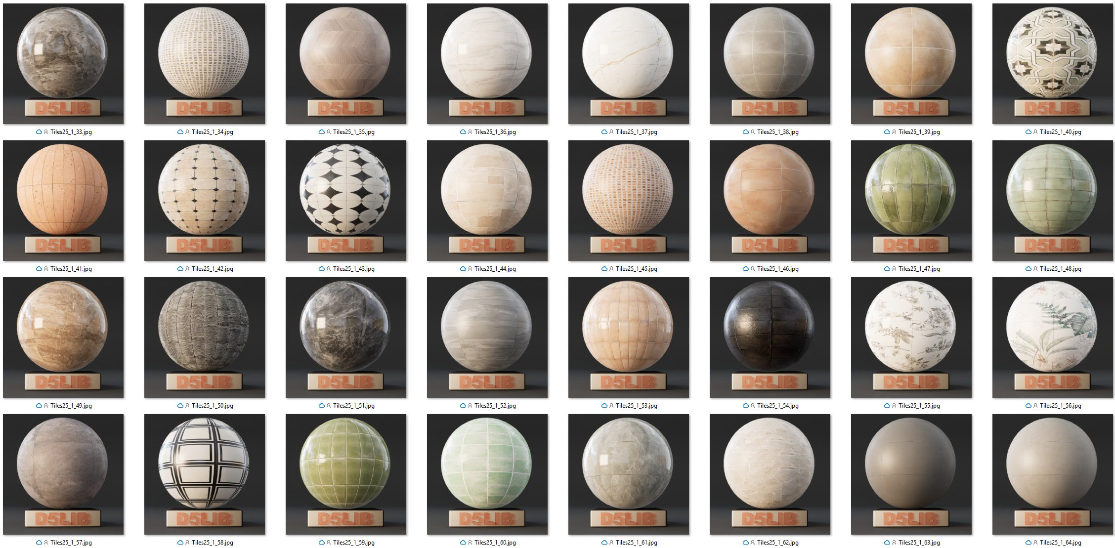 In D5lib Tiles 25_1 this includes 65 Material: